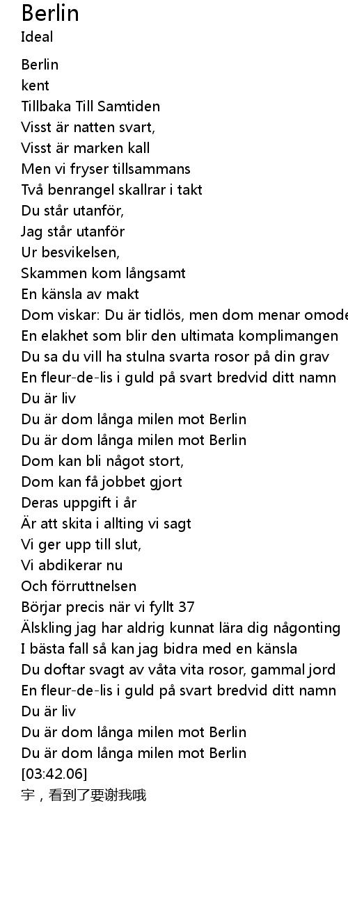 | [03:26.74] | Du är dom långa milen mot Berlin |