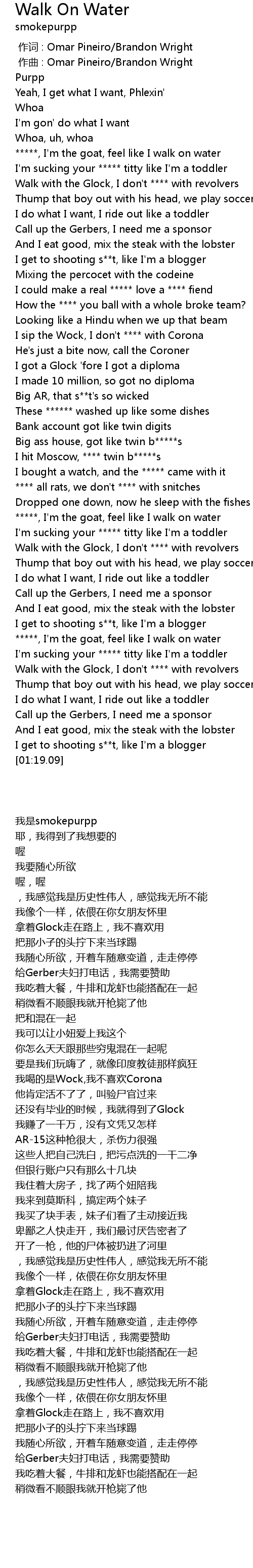 | [00:52.29] | *****, I'm the goat, feel like I walk on water |