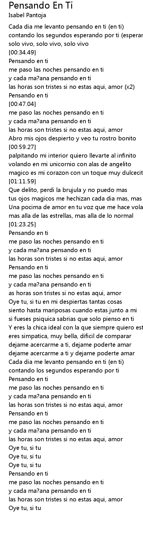 Pensando En Ti 歌词