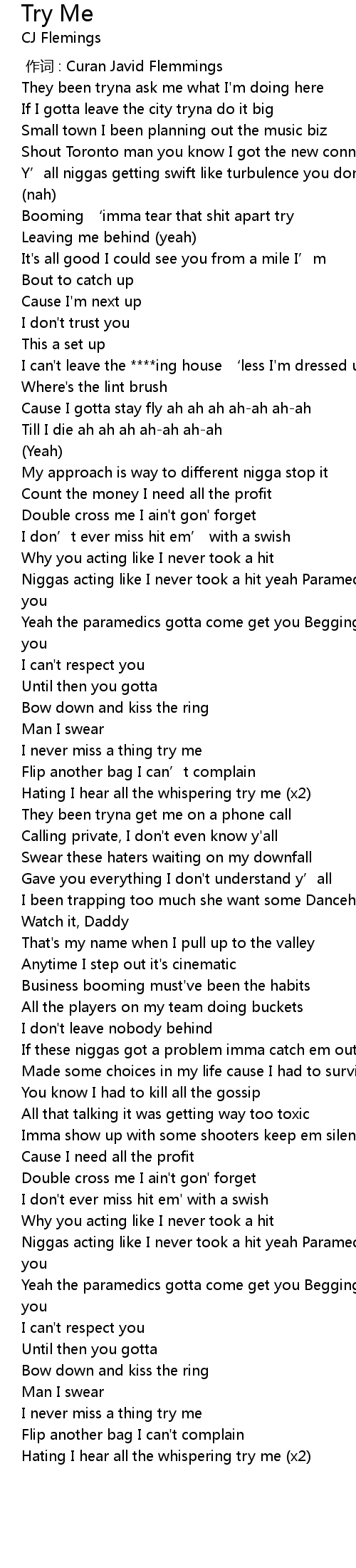 | [03:01.02] | Hating I hear all the whispering try me (x2) |