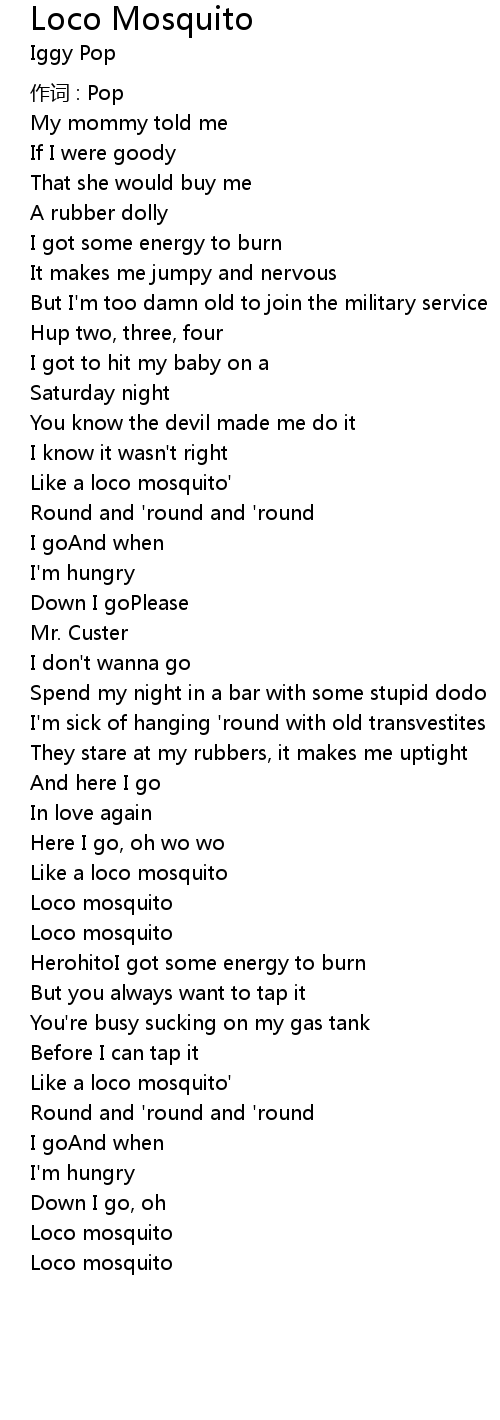 | 歌曲 | Loco Mosquito |