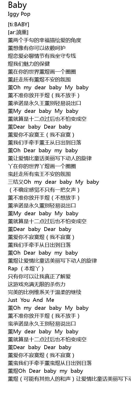 | [03:44.696] | 薰煜Oh Dear baby my baby |