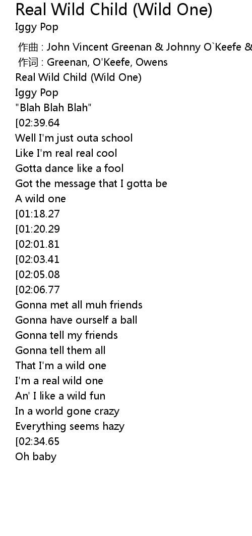 | [02:38.36][02:34.65][02:31.33][02:28.31][01:55.36] | I' m a wild one |