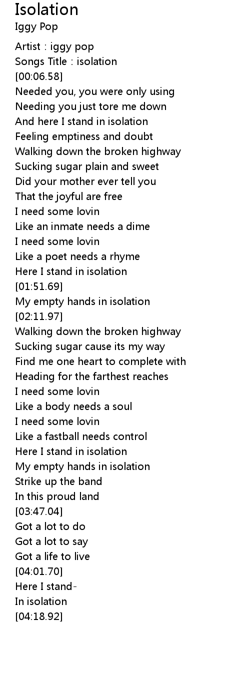 | [00:03.33] | Songs Title:isolation |