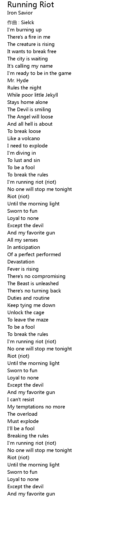 | 歌曲 | Running Riot |