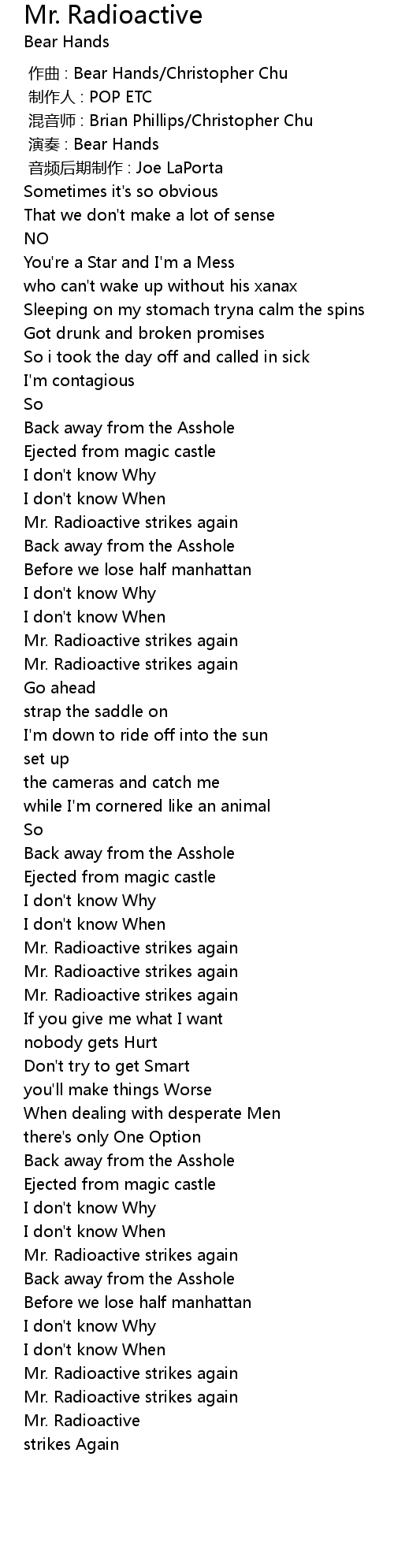 | 歌曲 | Mr. Radioactive |