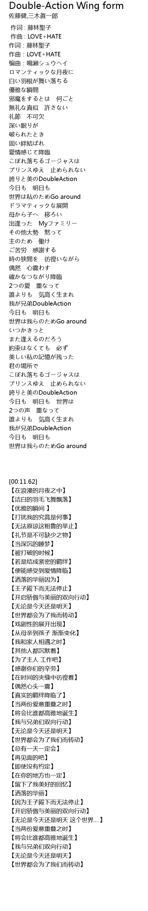 | [03:07.86] | wǒ xiōng dì DoubleAction |