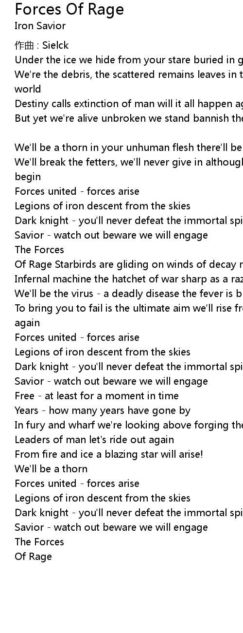 | But yet we' re alive unbroken we stand bannish the conquerer who' s taken the land | |