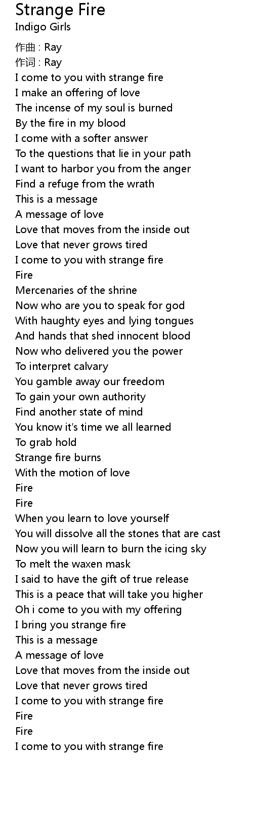 | I come to you with strange fire | |