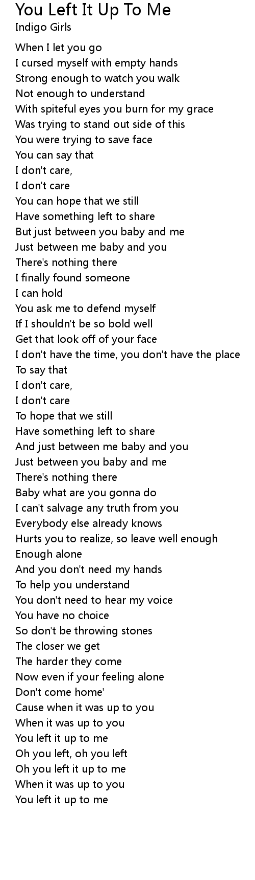 Oh you left it up to me |