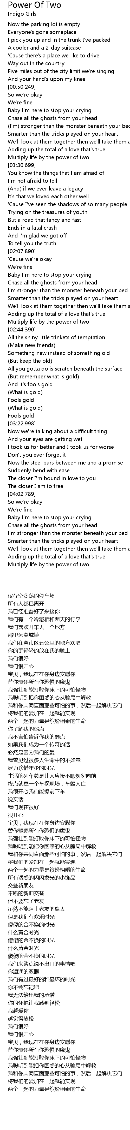 | [02:37.768] | 两个一起的力量是缤纷相乘的生命 |