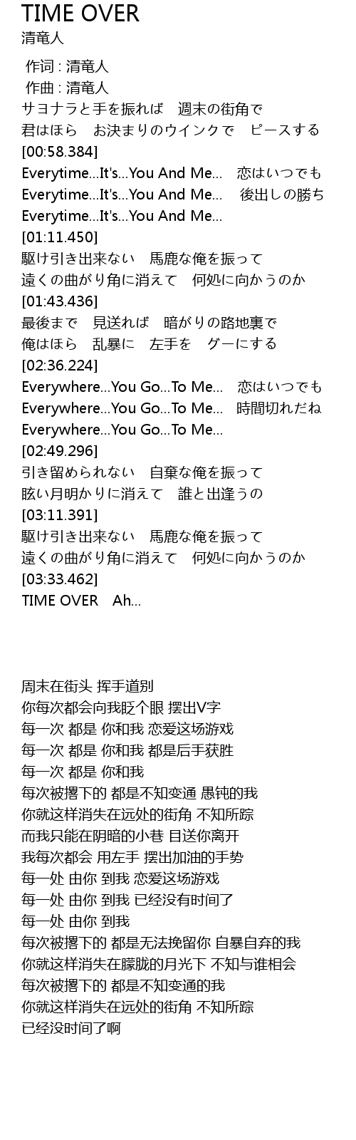 | [02:41.145] | Everywhere... You Go... To Me... shí jiān qiè |