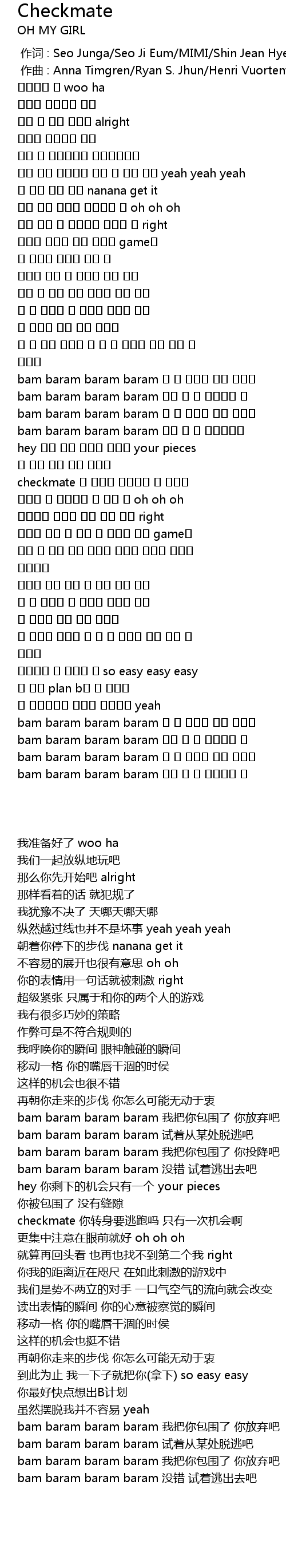 | 歌曲 | Checkmate |