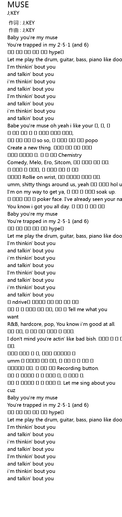 | [00:39.225] | Babe you're muse oh yeah i like your 눈, 코, 입 |