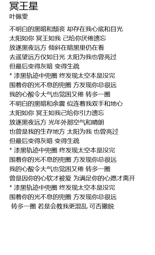 | [01:36.350] | 太阳如你 冥王如我己给你引力遗忘 |