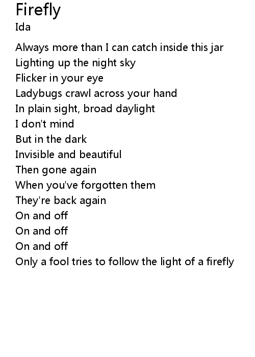 | Only a fool tries to follow the light of a firefly |