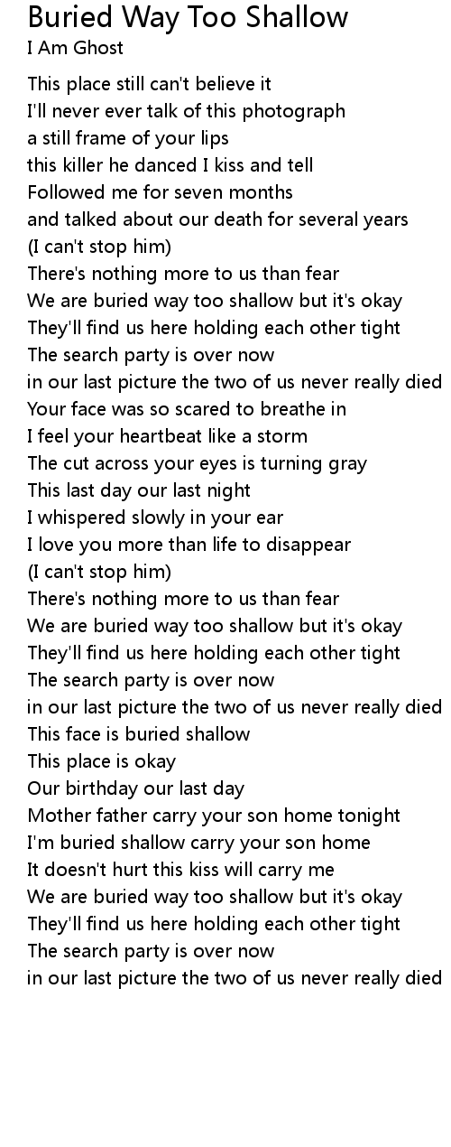 I'm buried shallow carry your son home |