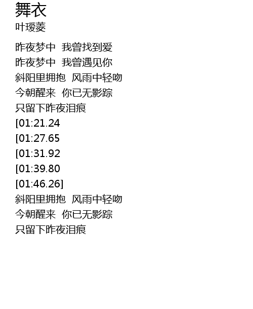 | [00:26.00] | 昨夜梦中 我曾找到爱 |