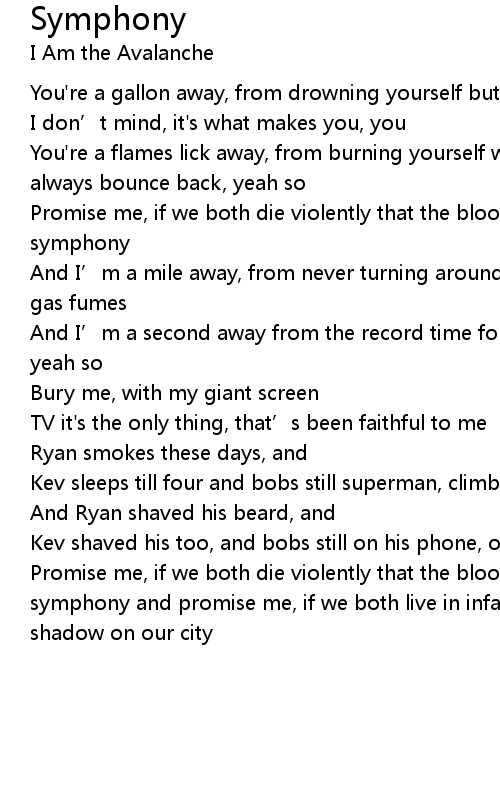 | Promise me, if we both die violently that the blood dripping from our chin is a symphony | |