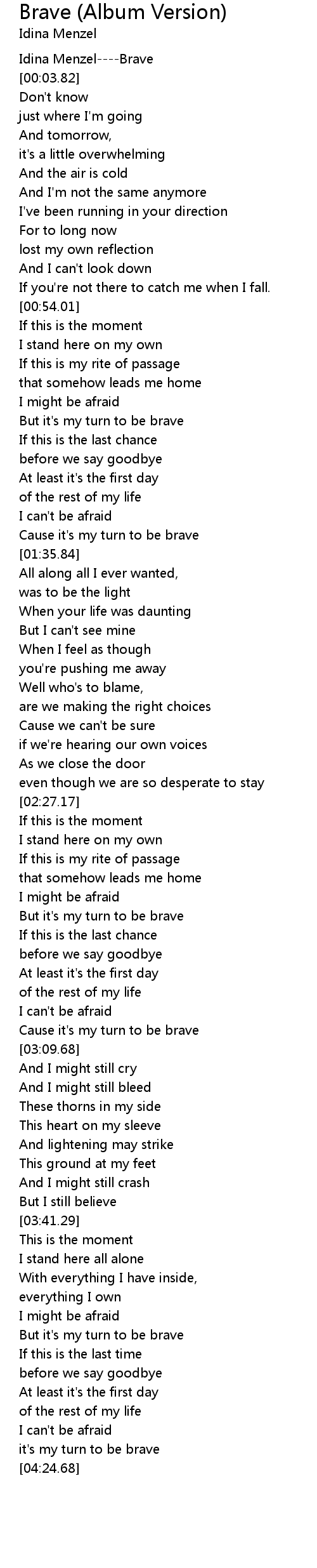 But it's my turn to be brave |