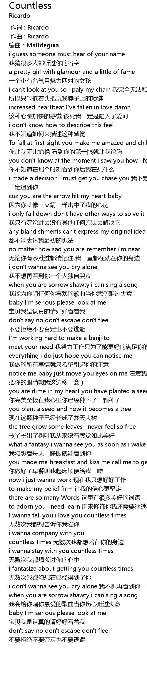 | [01:57.900] | I wanna tell you i love you countless times wú shù cì wǒ dōu xiǎng gào sù nǐ wǒ ài nǐ |