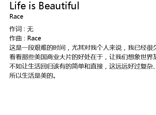 | 专辑 | Life is Beautiful |