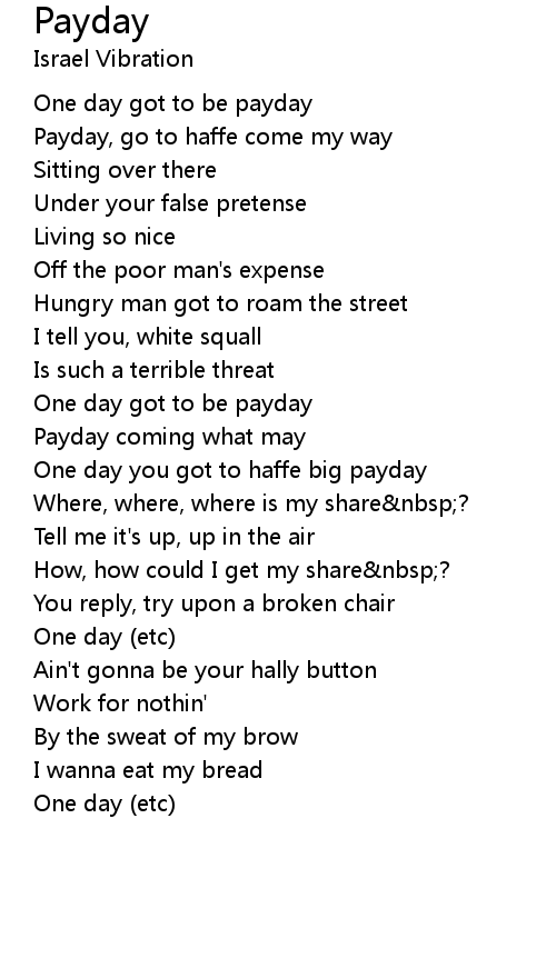 Payday, go to haffe come my way |