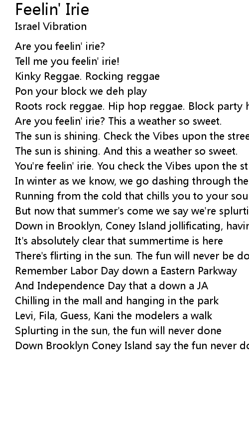Are you feelin' irie? This a weather so sweet. |