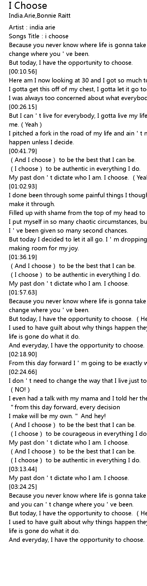 | [02:03.71] | But today, I have the opportunity to choose. (Hey ey) |