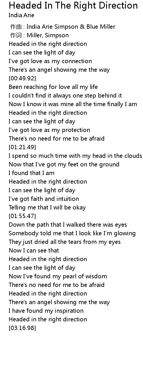 | 歌曲 | Headed In The Right Direction |