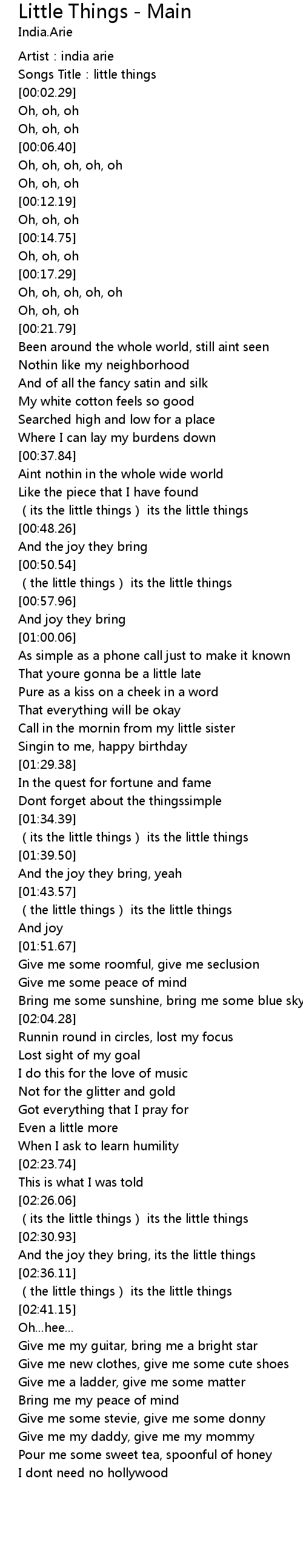 | [00:01.22] | Songs Title: little things |