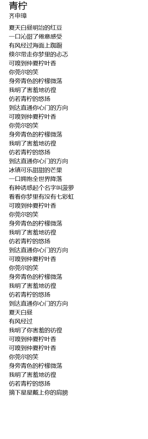 | [02:08.876] | 可嗅到仲夏柠叶香 |