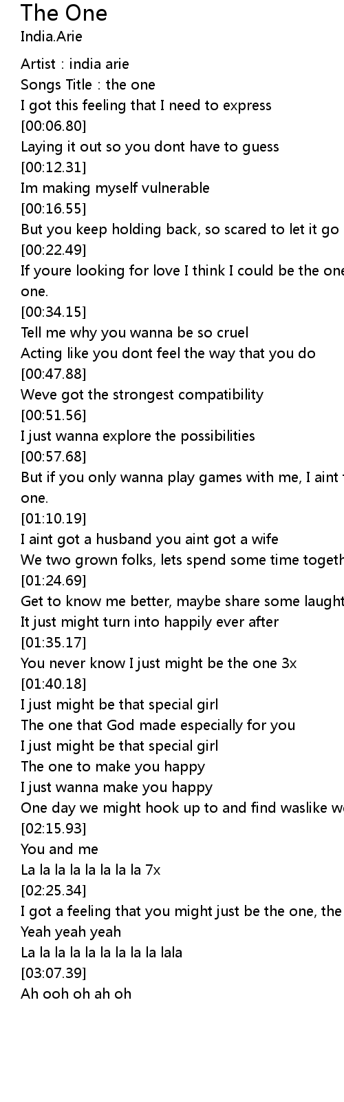 | [00:02.05] | Songs Title: the one |