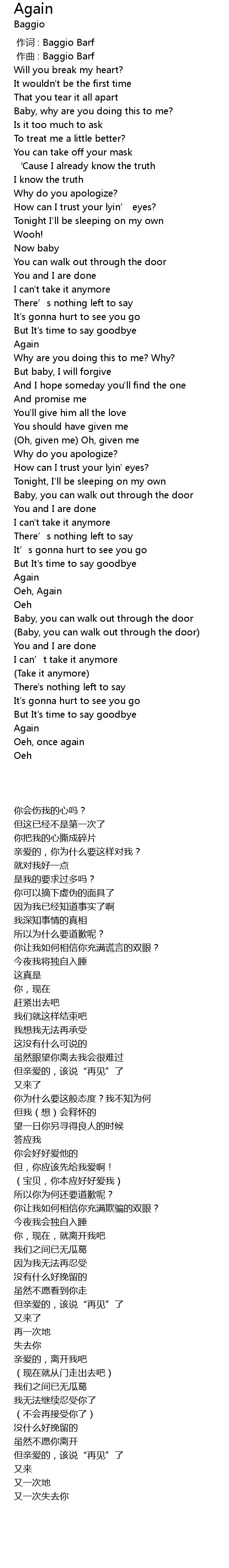 | [00:00.000] | 作词 : Baggio Barf |