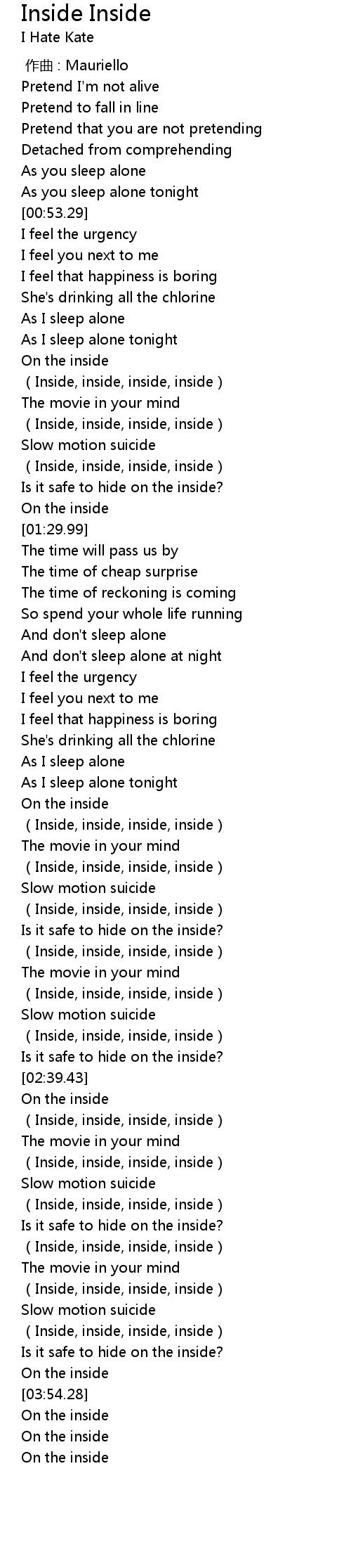 | [02:13.43] | Inside, inside, inside, inside |
