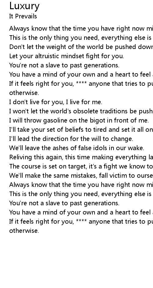 I won't let the world's obsolete traditions be pushed upon me. |