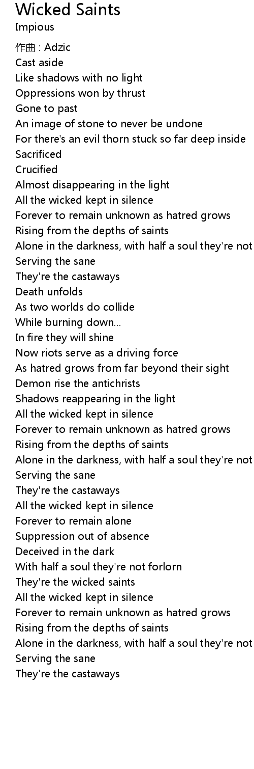 | 歌曲 | Wicked Saints |
