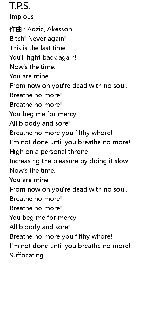 | Breathe no more you filthy whore! | |