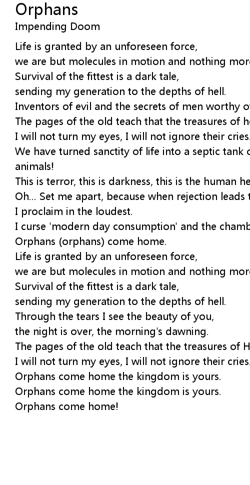 Orphans come home the kingdom is yours. |