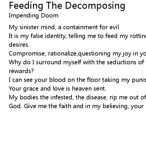 | My bodies the infested, the disease, rip me out of me, dwell in me oh | |