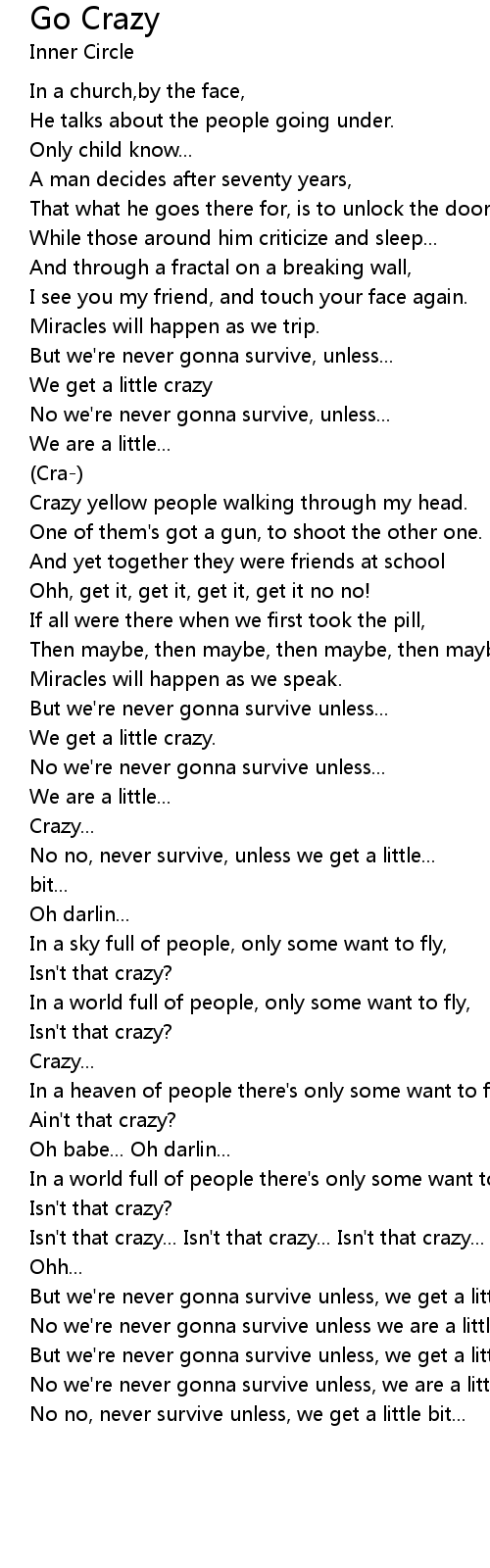 But we're never gonna survive unless, we get a little crazy.. crazy.. |