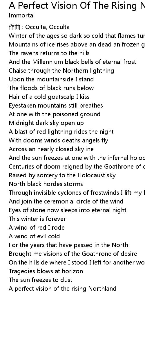 | 歌曲 | A Perfect Vision Of The Rising Northland |