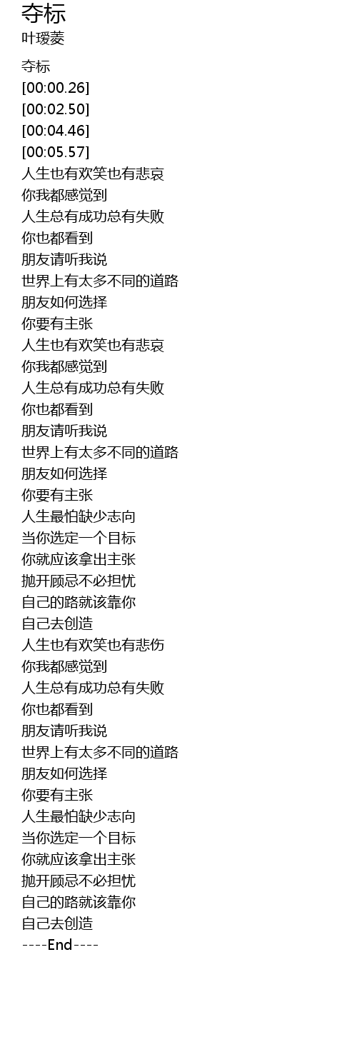 | [02:51.63] | 人生最怕缺少志向 |