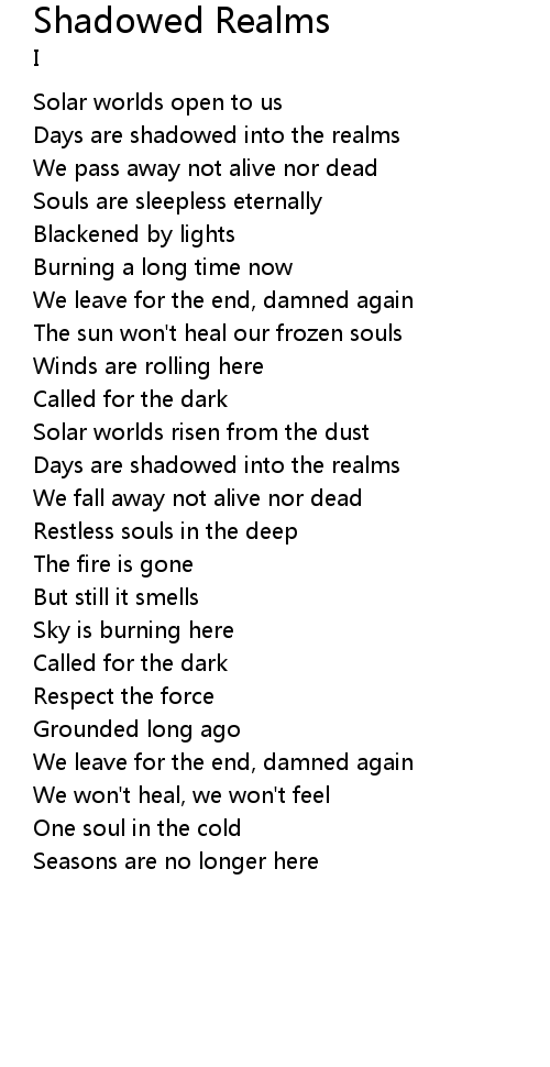 Days are shadowed into the realms |