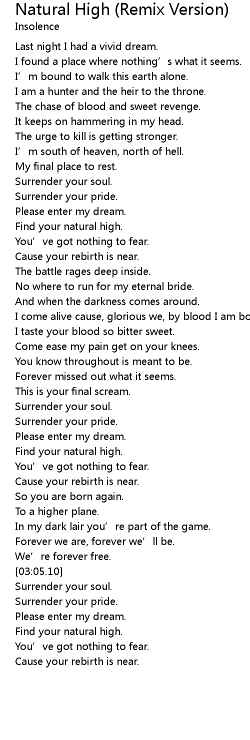 | [03:48.36] | Find your natural high. |