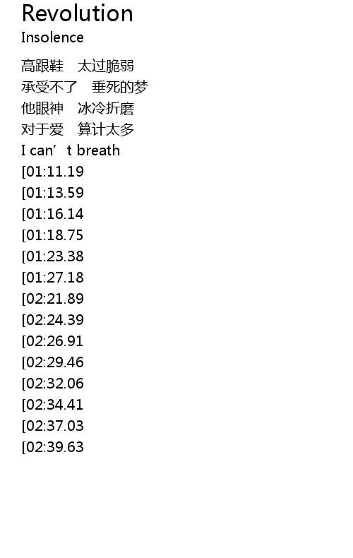 | [03:27.87][02:21.89][01:31.39] | 甩开一切 revolution |