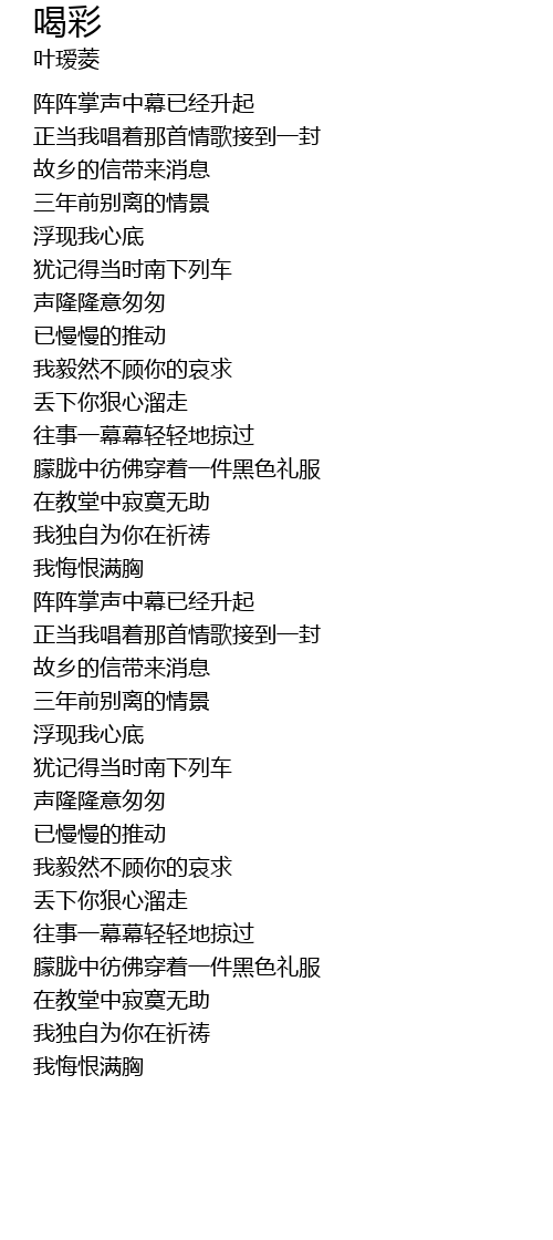 | [02:33.54] | 朦胧中彷佛穿着一件黑色礼服 |