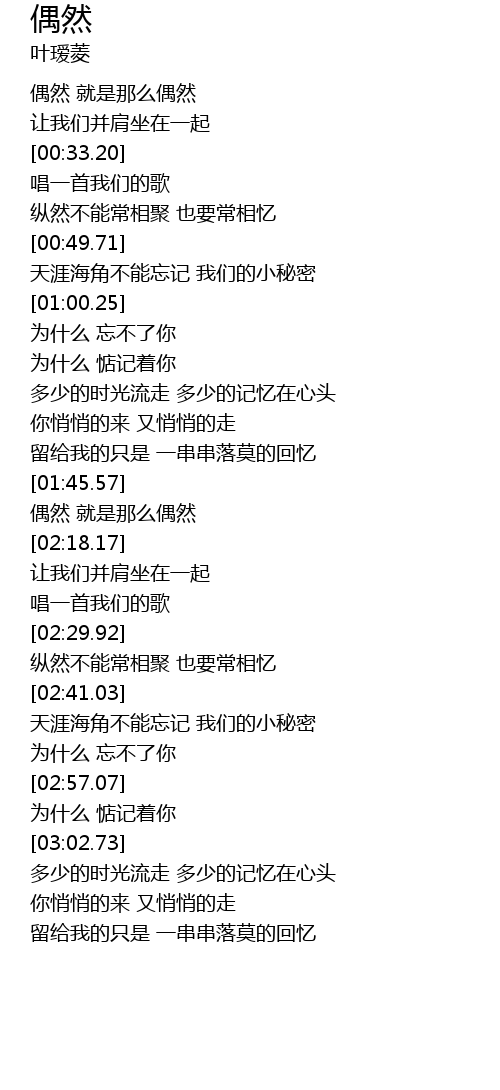 | [00:17.38] | ǒu rán jiù shì nà me ǒu rán |