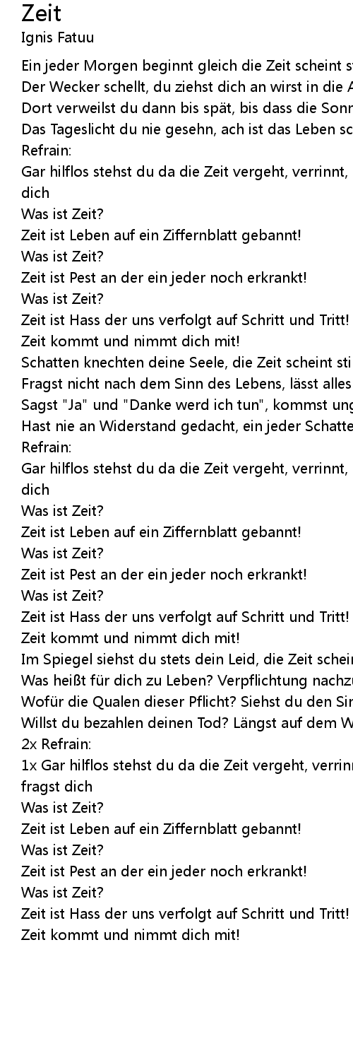 | 1x Gar hilflos stehst du da die Zeit vergeht, verrinnt, sie schwindet und du fragst dich | |