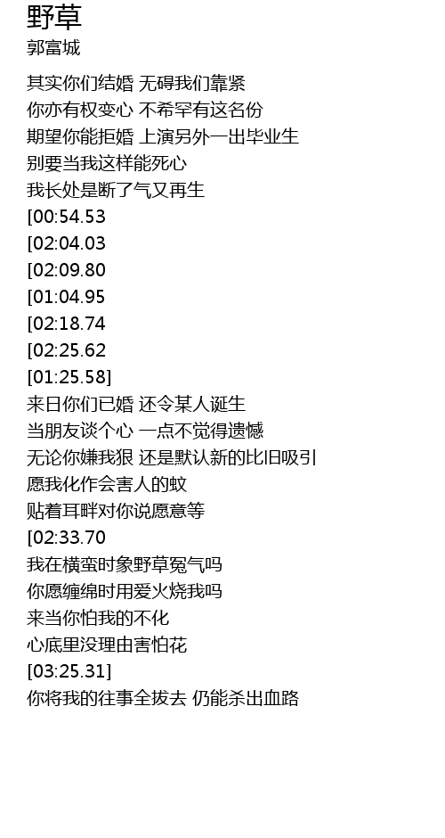 | [02:34.65] | 我在横蛮时象野草冤气吗 |